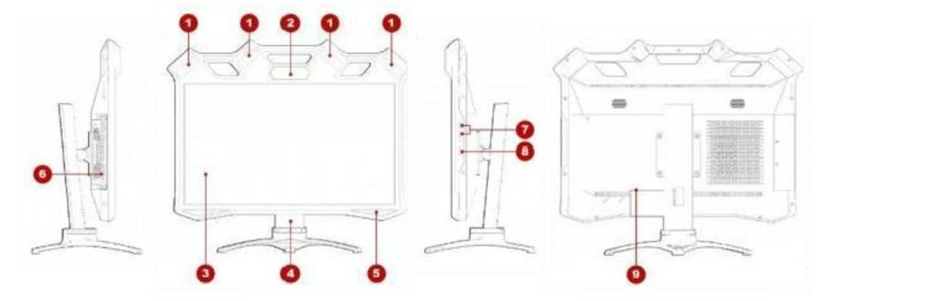 1、相机2、红外发射器3、27寸3D显示器4、显示器支架5、立体声扬声器