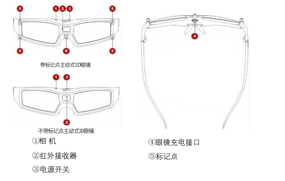 2、带标记点主动式3D眼镜一般由操作者佩戴,不带标记点主动3D眼