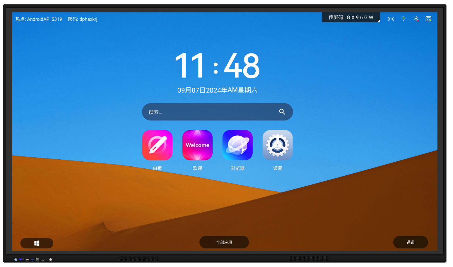 16. 支持屏幕界面底部上滑一键呼出多功能菜单栏,可自定义批注、3D切换、截屏、菜单、信号源等多个快捷键。