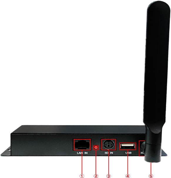 2. 将包装内适配天线接到 3D OUT 天线接口。
