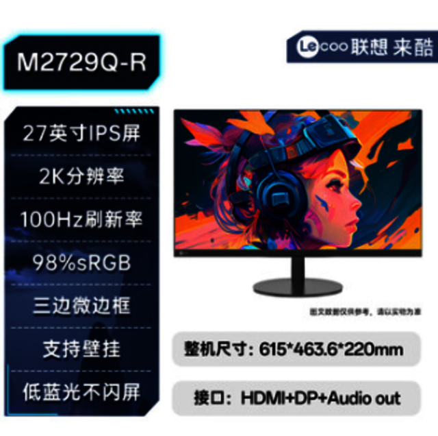 设计上,三面微边框结构提升屏占比,视觉沉浸感更强;支持VESA 100×100mm壁挂,可灵活适配多屏拼接或升降支架。接口配备HDMI+DP双接口,兼容主流设备;外接电源适配器设计降低机身厚度,普通支架底座满足基础调节需求。此外,该显示器通过德国莱茵TÜV低蓝光认证,配合不闪屏技术,有效缓解长时间用眼疲劳,适合长时间办公使用。综合3年质保、2.7kg轻量化机身及600-700元价位段,性价比优势显著。